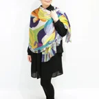 スタンダードな大判サイズで巻きでも羽織でもどちらでも使いやすくなっています。特に春夏の日除けや冷房対策としても使いやすく、ファッションのアクセントとしてなら一年中使うことができます。