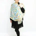 スタンダードな大判サイズで巻きでも羽織でもどちらでも使いやすくなっています。特に春夏の日除けや冷房対策としても使いやすく、ファッションのアクセントとしてなら一年中使うことができます。