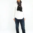 全面に施されたアーリ刺繍は誰もが振り返るほどの美しさ。ひとたび羽織ればパッと華やかにゴージャスな雰囲気に変わります。上半身を覆えるので、着ている服を気にせず合わせることができます。