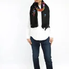コントラストの効いた手刺繍が美しい一枚。日常が優雅に変わる。大人の女性のためのドレスアップストールです。