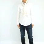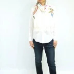 視線を集めながら、決して騒がない上品なデザイン。清楚なホワイトベースに鮮やかな刺繍糸のコントラストが絶妙な一枚です。