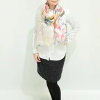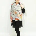 大判サイズのストールで肩から羽織る使い方もできます。春夏の日除けや室内の冷房対策としても使いやすくなっています。
