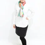 大判サイズのストールで肩から羽織る使い方もできます。春夏の日除けや室内の冷房対策としても使いやすくなっています。