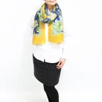 大判サイズのストールで肩から羽織る使い方もできます。春夏の日除けや室内の冷房対策としても使いやすくなっています。