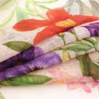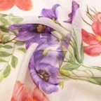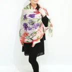 巻くほどに好きになるリネンストール。華やかなフラワーモチーフでお顔周りをパッと明るく見せてくれます!