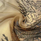 揺れるたびに美しい、透けるモスリンシルクの魅力。グラデーションカラーと繊細なデザインが目を引く一枚です。