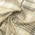 大判ショールサイズで肩から羽織る使い方にも適しています。ゆるっと巻くだけで立体感を作りやすく、ほどよいボリュームも出すことができます。春夏の日除けや冷房対策としても使いやすく、ファッションのアクセントとしてなら一年中使うことができます。