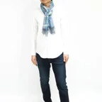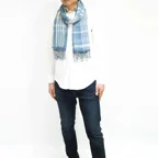 細番手のコットン糸を甘く撚り、ふっくら柔らかで付け心地よい肌あたり。シンプルなチェック・ボーダーも大判ショールサイズなら立体感あるこなれた印象になります。