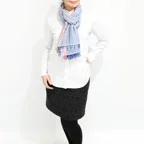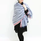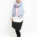 大判ショールサイズで肩から羽織る使い方にも適しています。ゆるっと巻くだけで立体感を作りやすく、ほどよいボリュームも出すことができます。春夏の日除けや冷房対策としても使いやすく、ファッションのアクセントとしてなら一年中使うことができます。