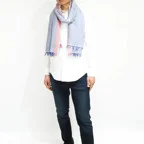 ほっそり見せが叶うストライプ。配色ラインが目を引く、アクセントストールです。