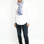 大判ショールサイズで肩から羽織る使い方にも適しています。ゆるっと巻くだけで立体感を作りやすく、ほどよいボリュームも出すことができます。春夏の日除けや冷房対策としても使いやすく、ファッションのアクセントとしてなら一年中使うことができます。