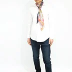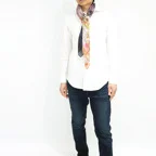 88cm×88cmの大判スカーフで、首元のアクセントに最適。アスコットタイのようにシャツやブラウスの中におさめて使うこともできますし、対角で畳んで肩から羽織ることもできます。また、身につけるだけでなく、手持ちのバッグにキュッと結べるアクセサリーとしても重宝します。