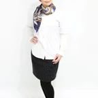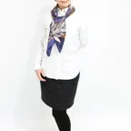 スクエアサイズで、アスコットタイのようにシャツやブラウスの中におさめて使うこともできます。室内でも巻いたままでいられるので使いやすくなっています。