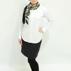 スクエアサイズで、アスコットタイのようにシャツやブラウスの中におさめて使うこともできます。室内でも巻いたままでいられるので使いやすくなっています。