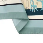 90cm×90cmの正方形サイズで小さくまとります。折りたためばサッとバッグに入れて持ち運べます。外出先でも邪魔になることはありません。また、身につけるだけでなく、手持ちのバッグにキュッと結べるアクセサリーとしても重宝します。
