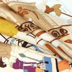 首元をお洒落に魅せる大判スカーフ。イタリアシルクのやさしい肌触りも大きな魅力です。