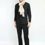 大判サイズのストールで肩から羽織る使い方もできます。春夏の日除けや室内の冷房対策としても使いやすくなっています。