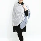 200cm×70cm大判サイズで、巻きでも羽織でもどちらも使いやすいストールです。上半身をすっぽりと覆うことができるため、トップスを気にせず合わせることができます。