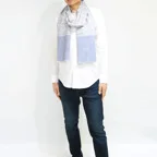 200cm×70cm大判サイズで、巻きでも羽織でもどちらも使いやすいストールです。上半身をすっぽりと覆うことができるため、トップスを気にせず合わせることができます。