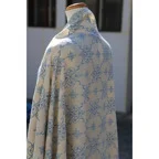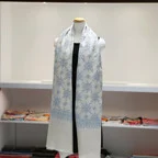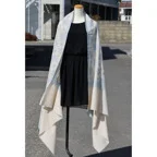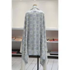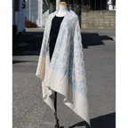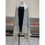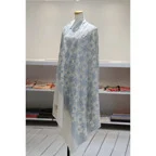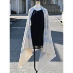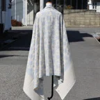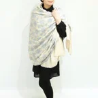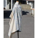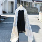 195cm×100cm大判ショールサイズで、巻きでも羽織でもどちらも使いやすいストールです。特に羽織は全面に施された刺繍が美しく輝き、サッとあしらうだけでゴージャスな雰囲気に変化します。横幅が特に長いのでドレスや着物などの羽織物としても重宝します。