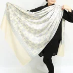 このカシミアストールには最も繊細なインドカシミール地方ラダック産カシミア糸(パシュミナ)が使われています。そのため手織りカシミアストールの中でも最も目が細く繊細な生地となっています。薄くて軽くてやわらかい最上級の一枚です。