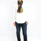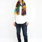 大判サイズのストールで肩から羽織る使い方もできます。春夏の日除けや室内の冷房対策としても使いやすくなっています。