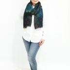 大判サイズのストールで肩から羽織る使い方もできます。春夏の日除けや室内の冷房対策としても使いやすくなっています。