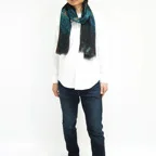 大判サイズのストールで肩から羽織る使い方もできます。春夏の日除けや室内の冷房対策としても使いやすくなっています。