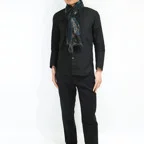 深みのある色使いと抽象的なデザインで着回しやすいリネンストール。性別を問わず使いやすいのも嬉しいポイントです。