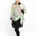 大判サイズのストールで肩から羽織る使い方もできます。春夏の日除けや室内の冷房対策としても使いやすくなっています。