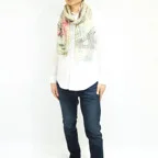 大判サイズのストールで肩から羽織る使い方もできます。春夏の日除けや室内の冷房対策としても使いやすくなっています。