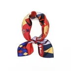 90cm×90cmの正方形サイズで小さくまとります。折りたためばサッとバッグに入れて持ち運べます。外出先でも邪魔になることはありません。また、身につけるだけでなく、手持ちのバッグにキュッと結べるアクセサリーとしても重宝します。