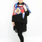スクエアサイズで、アスコットタイのようにシャツやブラウスの中におさめて使うこともできます。室内でも巻いたままでいられるので使いやすくなっています。