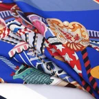 スクエアサイズで、アスコットタイのようにシャツやブラウスの中におさめて使うこともできます。室内でも巻いたままでいられるので使いやすくなっています。