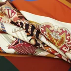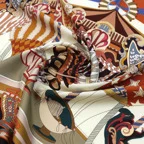 アートのようなデザインとつるりと滑らかなイタリアンシルク100%。どんな巻き方をしてもおしゃれな印象に仕上がる一枚です。