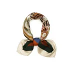90cm×90cmの正方形サイズで小さくまとります。折りたためばサッとバッグに入れて持ち運べます。外出先でも邪魔になることはありません。また、身につけるだけでなく、手持ちのバッグにキュッと結べるアクセサリーとしても重宝します。