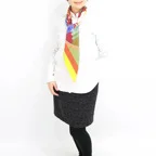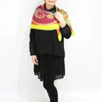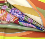 触れた瞬間、指先が喜ぶ。極上のとろみと、しなやかなハリ感。色彩とラインが織りなす、洗練のグラフィック。多色使いで首元のアクセントに最適です!