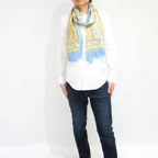 スタンダードな大判サイズで巻きでも羽織でもどちらでも使いやすくなっています。特に春夏の日除けや冷房対策としても使いやすく、ファッションのアクセントとしてなら一年中使うことができます。