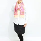スタンダードな大判サイズで巻きでも羽織でもどちらでも使いやすくなっています。特に春夏の日除けや冷房対策としても使いやすく、ファッションのアクセントとしてなら一年中使うことができます。