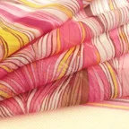 流れるようなダイナミックな幾何学柄。発色も良くゆるっと巻くだけでアクセント効果が高くなっています。