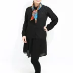 65cm×65cmの小判スカーフで、アスコットタイのようにシャツやブラウスの中におさめて使うこともできます。室内でも巻いたままでいられるので使いやすくなっています。