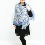 スタンダードな大判サイズで巻きでも羽織でもどちらでも使いやすくなっています。特に春夏の日除けや冷房対策としても使いやすく、ファッションのアクセントとしてなら一年中使うことができます。