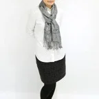 バランスがよいミドルサイズのため、ボリュームを抑えつつ様々な場面で活用できます。巻きでも羽織でもどちらでも使いやすくなっています。