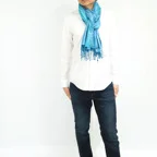 バランスがよいミドルサイズのため、ボリュームを抑えつつ様々な場面で活用できます。巻きでも羽織でもどちらでも使いやすくなっています。