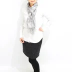 スタンダートな大判サイズで巻いても羽織っても、どちらも使いやすいタイプです。特に羽織は全体の印象がパッと華やかに、エレガントな雰囲気に変化します。