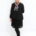 しっとりとしたやわらかい生地感で、肌に沿うような質感に仕上がっています。狙ったシルエットを出しやすく、取り扱いがしやすいスカーフです。