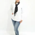 88cm×88cmの大判スカーフで、首元のアクセントに最適。アスコットタイのようにシャツやブラウスの中におさめて使うこともできますし、対角で畳んで肩から羽織ることもできます。また、身につけるだけでなく、手持ちのバッグにキュッと結べるアクセサリーとしても重宝します。