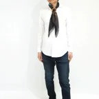 88cm×88cmの大判スカーフで、首元のアクセントに最適。アスコットタイのようにシャツやブラウスの中におさめて使うこともできますし、対角で畳んで肩から羽織ることもできます。また、身につけるだけでなく、手持ちのバッグにキュッと結べるアクセサリーとしても重宝します。