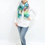 大判サイズのストールで肩から羽織る使い方もできます。春夏の日除けや室内の冷房対策としても使いやすくなっています。