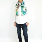 さらさら、華やか。一枚羽織るだけで、綺麗が叶う。デイリー使いはもちろん、バカンスで巻いても映えるデザインです。